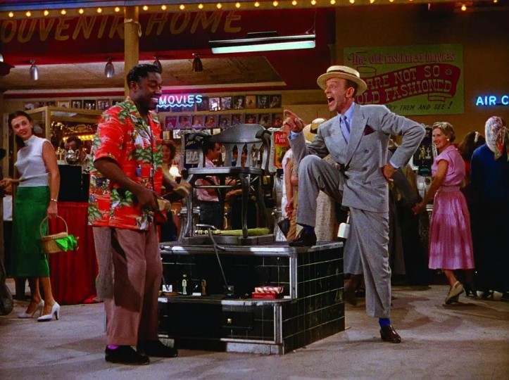 A Shine On Your Shoes是片中不多见的叙事式歌舞,不仅是阿斯泰尔职业生涯中少数与黑人演员合作的案例,更是全片唯一以纯粹黑人舞蹈美学为基质的作品。整段舞蹈以大量Soft Shoe(软底鞋踢踏舞)为动作素材——此舞种既是阿斯泰尔的技艺标识,亦契合托尼·亨特所承载的百老汇奠基期(1920s-1940s)表演基因,两者对旧式娱乐形式的熟稔以及整支舞段表露出的托尼对旧式娱乐的怀恋,使Soft Shoe成为最合适的选择。该段落选用了擦鞋(Shoe Shine)为动机和线索,贯穿了整支剧目,这是在爵士年代舞厅舞蹈中常见的动作元素与意象,常被同于踢踏舞表演中。在表演中的角色架构采用经典二分法分为两种——擦鞋匠与客人,擦鞋匠一角在大部分情况下是舞段主要的表演者,通常