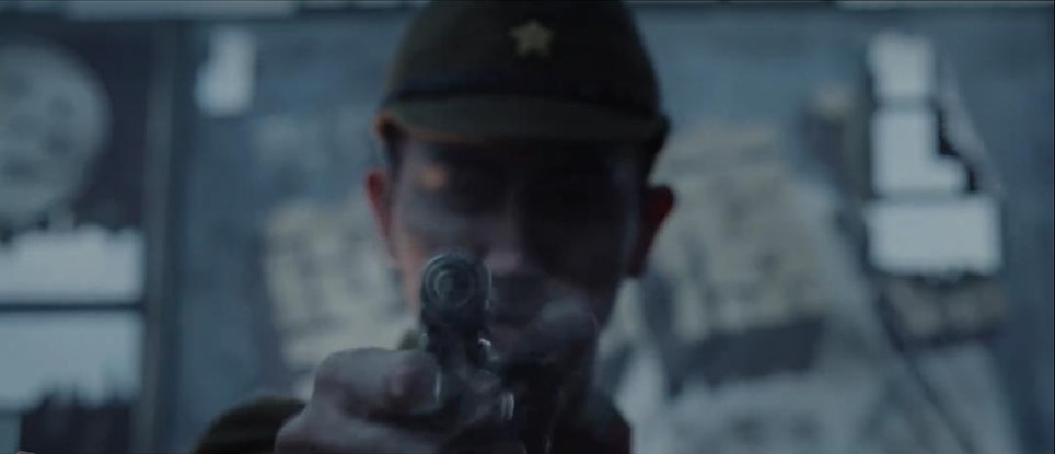 在河边屠杀的场景里,出现大量的直面枪口的镜头,这些枪口对准过我的同胞,也跨过历史抵在我的后腰。历史冰冷的客观叙事,瞬间给了身临其境的恐惧感。