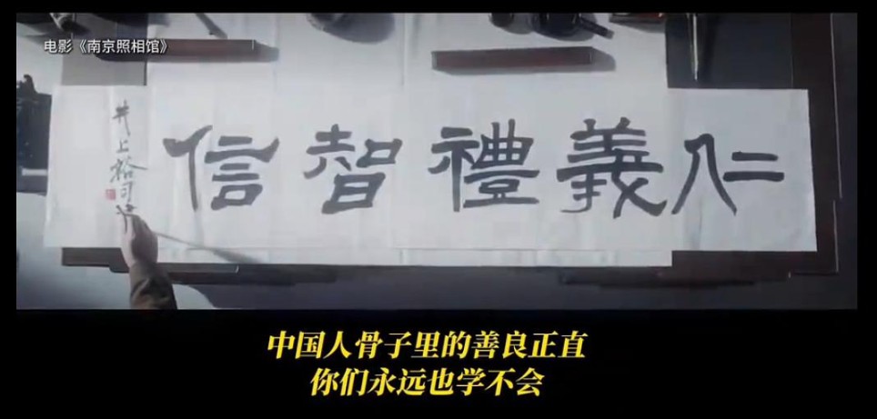 底片一张张划过,吉祥照相馆定格住了他们喜悦的人生时刻,他们本该享受普通又平静的一生。他们是活生生的人啊,他们有名字、有过往、有喜怒哀乐。活生生的人,没有谁活着是为了成为尸山中的一具烂肉,没有谁身体里流淌的血液,是该成为水坑里的血色污水。电影没强调三十万同胞,没强调屠戮的血腥刺激。人们照片里定格的鲜活时刻,和城里像垃圾一样堆叠的尸体发生对比,却在一遍一遍的控诉,他们杀了一城的人,一城会说会笑的活生生的生命!被消亡的不是数字,是一条条的人命。