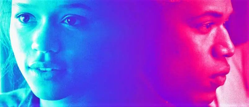 Tyler推搡父亲对峙母亲,开车离家前往舞会现场时,影片配曲采用了说唱艺术家Kanye West歌曲<I Am God>,搭配以红色为主的多色眩晕光影,凸显Tyler此时视野模糊——不再理智,描绘了失控的场面环境,又将紧张不安的情绪氛围推至顶点,预兆事故即将发生。