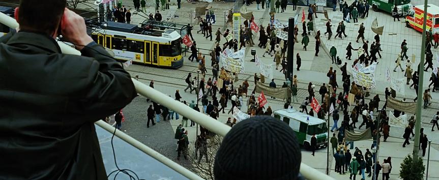 ①路上随眼看到的游行地点待会就被伯恩利用了。