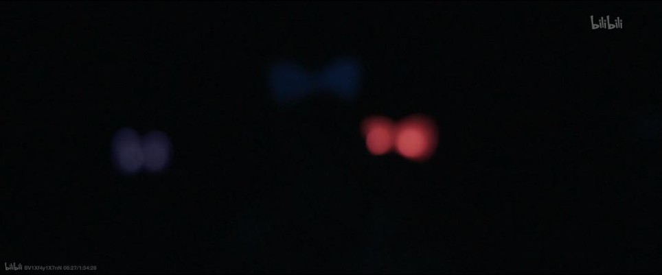 登上离开的船只后,画面变黑,一点点光亮又远及近。