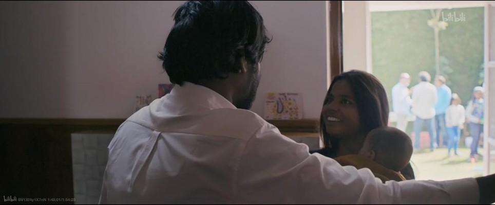 配乐像圣歌一样,女主带着男主和女孩一起投奔了表姐,看着新生的孩子,满是幸福的笑。