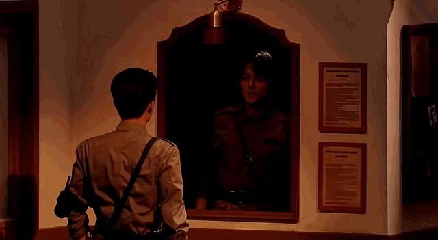 雷淞然整理仪容照镜子,镜中像竟然是张呈。
