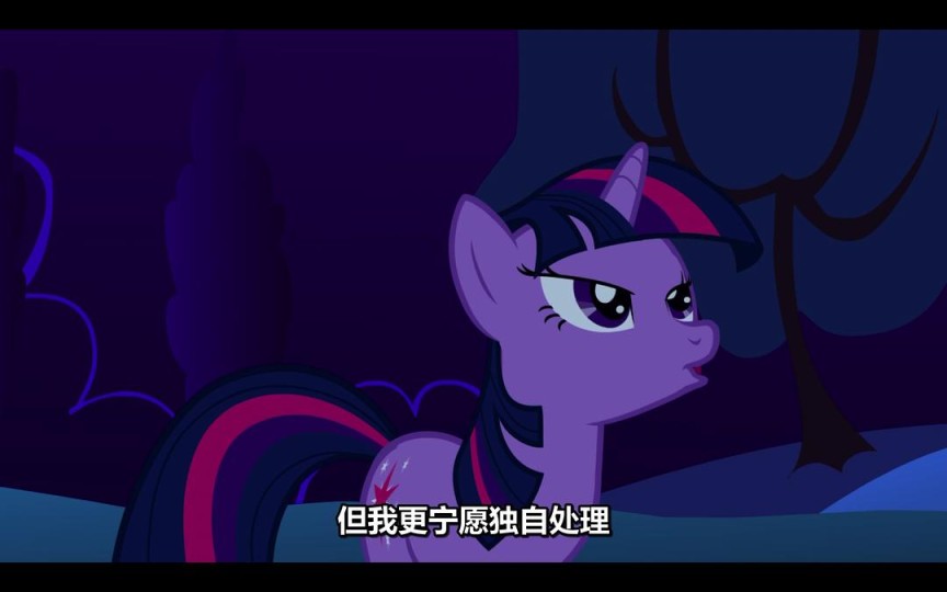 在基本人物都介绍完后,梦魇之月/Nightmare Moon如约而至。这时候的Twilight更多是惊慌、不知所措,期待她在下一集的人物转变。