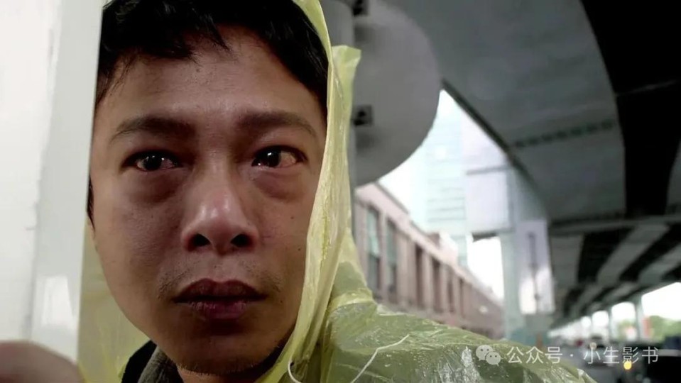 不知道影片设置于台湾一个怎样的时代背景,但在车来车往的高架桥下,身着一次性雨衣在狂风中手举沉重楼宇广告牌的人,一眼就能觉察出萧条,进而是对举牌人的怜惜。