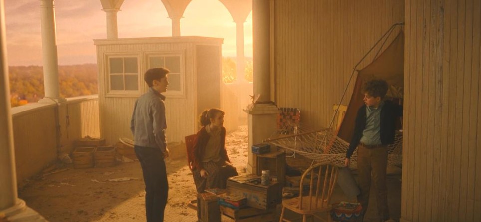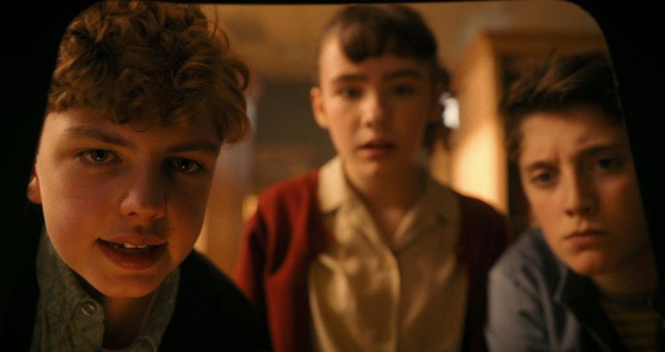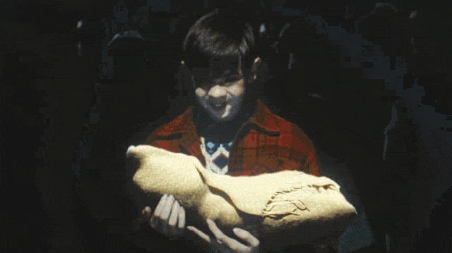 这一段剧情氛围紧张又诡异,宛如《鬼影实录》+《猛鬼放映室》的结合:空荡荡的老影院里,胶片放映机哒哒作响,银幕上歌舞升平,而现实中几个小孩屏息凝神地盯着荧幕,等待奇迹出现。