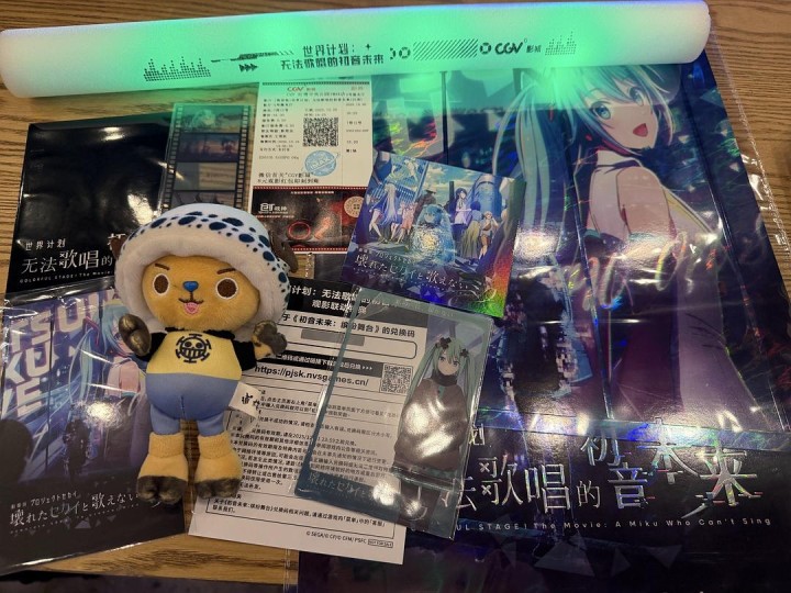一直知道初音未来,甚至听过一些歌,但影视相关是第一次看,游戏也没玩过,为了感受下气氛甚至报了个观影团。然后就……果不其然的脸盲了。开场前半小时内心OS:这谁,这谁?这又谁?几个未来?都是未来?啊,能从手机屏幕钻出来的未来好可爱,像个小手办,想要~~~后半段才逐渐搞清楚大家在干嘛(没基础知识的悲哀) 歌都很好听,观影团还给了荧光棒,片尾曲结束之后,特意有一首歌的时间是可以尽情挥舞荧光棒甚至跟着哼唱的(这可太日本了)~隔壁是未来的粉丝,从开始唱歌起就跃跃欲试疯狂环顾四周想要把他异常华丽的荧光棒拿出来挥舞(还好后来如愿了) 电影本身的情节不难,就是五个不同世界,用歌声为第六世界的丧人儿们打气,拯救未来×6的故事。追了十来年日娱,我可太懂音乐的力量了,它像一种魔法,真的可以给低谷之人勇气,还能召唤同好们跨越五湖四海汇聚在同一蓝天下,用力挥洒汗水与荧光棒跟着雀跃高歌,并从中获取生命力~唯一不同的是,每个人都有属于自己的“未来”,也只能用对自己有效的歌声(或其他形式)唤醒自己,但请相信,在这个世界,“自己”永远不会是孤单的。