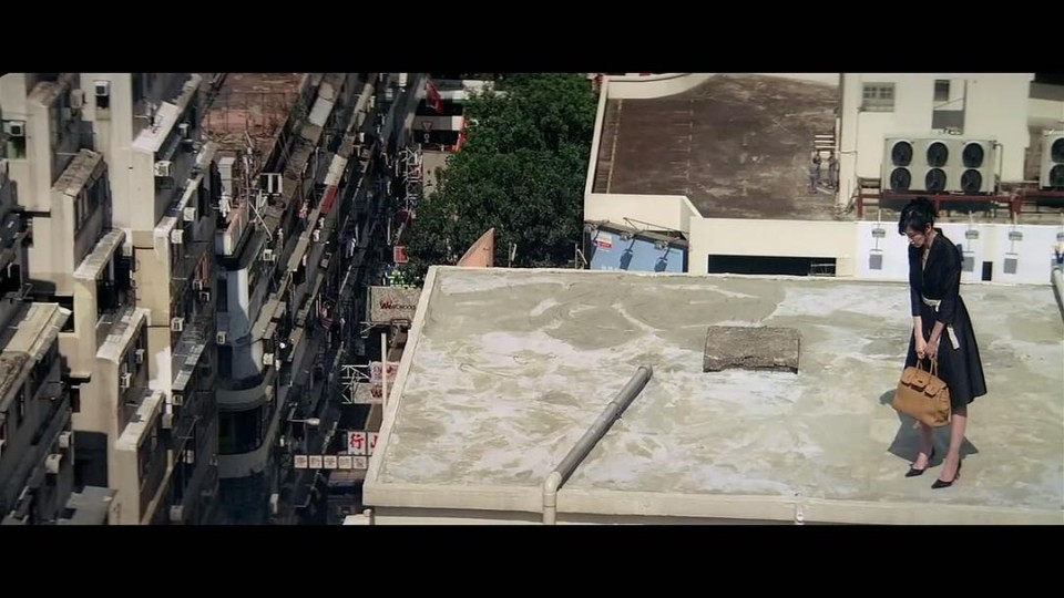 然而银河却用一股与本章节前述段落同等程度的反动推力,将其整体,推到黑色电影的反面。只要你看过本片,那么此处已无须赘述。不过有一些情节设计值得重提,比如珍妮与四人组遭遇的几段情节,如果它用交叉剪辑呈现,当然是更成一体,但本片最终选择用分段式,只可能因为情节之间的递进属性: 珍妮初登场,遇到了四人组的大哥,被他的双反相机捕捉入镜头内,如同片头那只雀仔,自愿而来,呆在菲林上不愿离去,那么画框就是一种桎梏,权力的体现;而后在与大哥竞争话事权的二弟面前,她开始以坚韧的意志,反制对方,但这只是一次不彻底的成功;随即与三弟共处一个电梯间,此处开始妙用道具,借一个掉落的气球完成对女性的阳具赋权(当然我不是在说女性需要或者渴望这个赋权,而是在一个父权社会里它需要自然地创造其情节合理性),总之这里是一次彻底的反制,以一次侵入(正如她所行目的便是侵入兄弟四人组),完成了对于三弟的芳心诱惑;这个组合段的最后一段,由她借乘细佬摩托车的情节贡献,同理,载具作为一种权力的象征,她要做的只是等待权力掉入这个陷阱,这段是一次回收,再次点明珍妮的以柔克刚之力。到这里还没结束,在四人组被报复而主动找珍妮清算时,他们与她困在一部电梯里,鱼缸横亘斜切,将人的桎梏与权力不可触达的尴尬感,做出再自然不过的连接,同时这也可以被视为珍妮的运气,当一个人想要自由,神会适时相助。在此之后的两处画面,更是强调了珍妮的主体性与神性时刻。一处是她拿过大哥拍的照片,阅后即焚,留下一句「别再拍我了」;另一处是她站在天台的水塔上,双臂提拉着手袋,垂下头看着地面,与此同时镜头从高机位俯瞰,我们能看到一座被下拉力扯住却不愿随之下坠的伟大肖像。再补充一句,权力关系的倒错设计是银河映像的拿手招数,而称上述段落为其TOP级发挥也不为过。