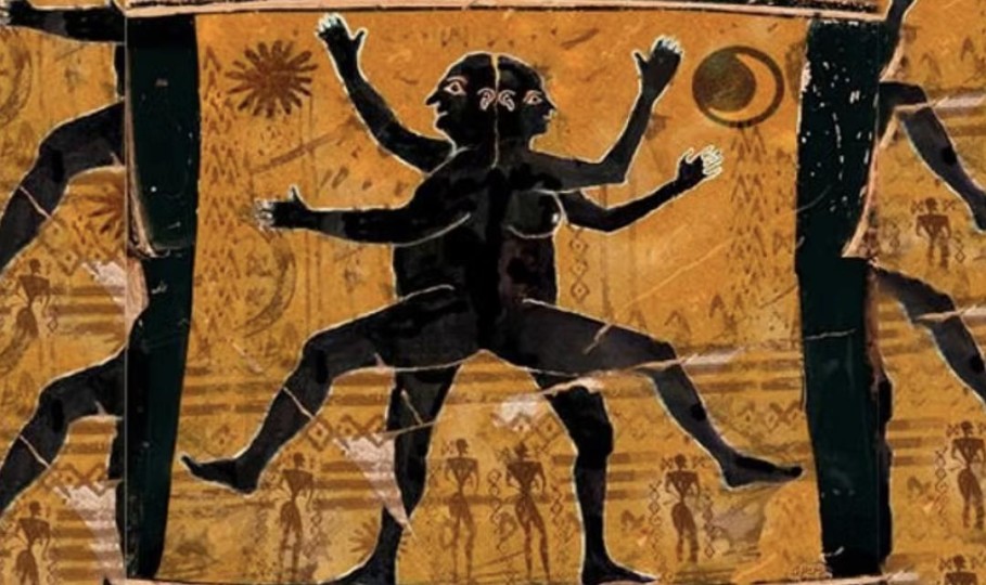 这种融合呼应了柏拉图在《会饮篇》中提出的“三性”理论:男性、女性与双性。神话中的四臂四腿双面人并不以二元性别划分,而是三元存在。