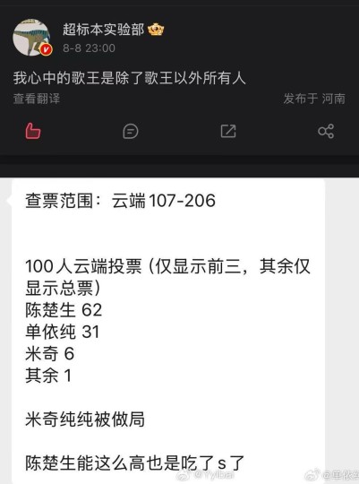 决赛呈现的14首歌,个人观感👇 米奇·盖顿 歌王🏆 李佳薇第二,单依纯第三,BENI表演令人惊喜 A-Lin有实力冲歌王,但第一轮好可惜,耳返问题 像被做局